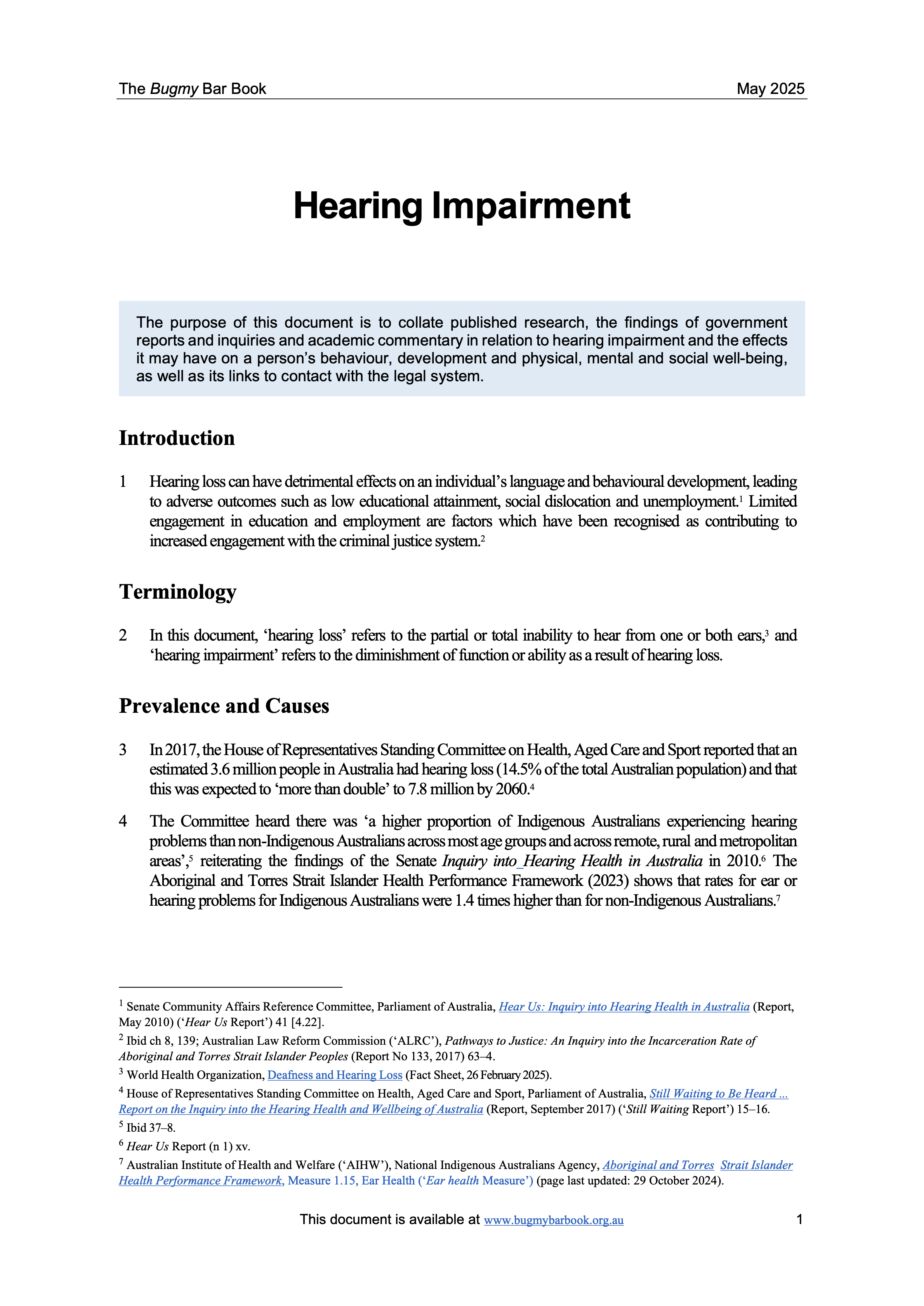 [6] Law Council of Australia, The Justice Project Final Report: People Who Experience Family Violence (Report, August 2018) 20, citing Senate Community Affairs Reference Committee, Parliament of Australia, Hear Us – Inquiry into Hearing Health in Australia (Report, May 2010) 147 [8.103]; Troy Vanderpoll and Damian Howard, ‘Investigation into Hearing Impairment among Indigenous Prisoners within the Northern Territory Correctional Services‘ (Report, 2011) 3.
